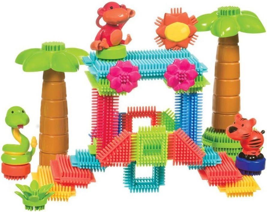 Battat- Bristle Blocks- STEM Interlocking Building Blocks- 58 pc Playset- Reusable Storage Bucket- Developmental Toys for Toddlers & Kids- Jungle Adventure- 2 Years +(58pc Jungle Adventure!)