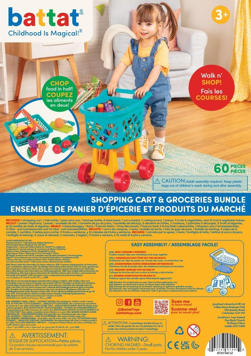 Battat – Deluxe Grocery Playset – Toy Food For Toddlers – Shopping Cart Toy – 20+ Pretend Food Items – 3+ Years– Shopping Cart & Groceries Bundle