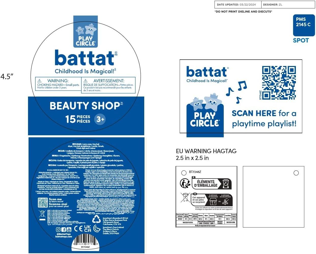 Battat – Play Circle – Hair Dryer With Sounds & Air – Carrying Case – Salon Accessories – Pretend Play Toys – Beauty Shop – 3+ Years(15 Pieces)