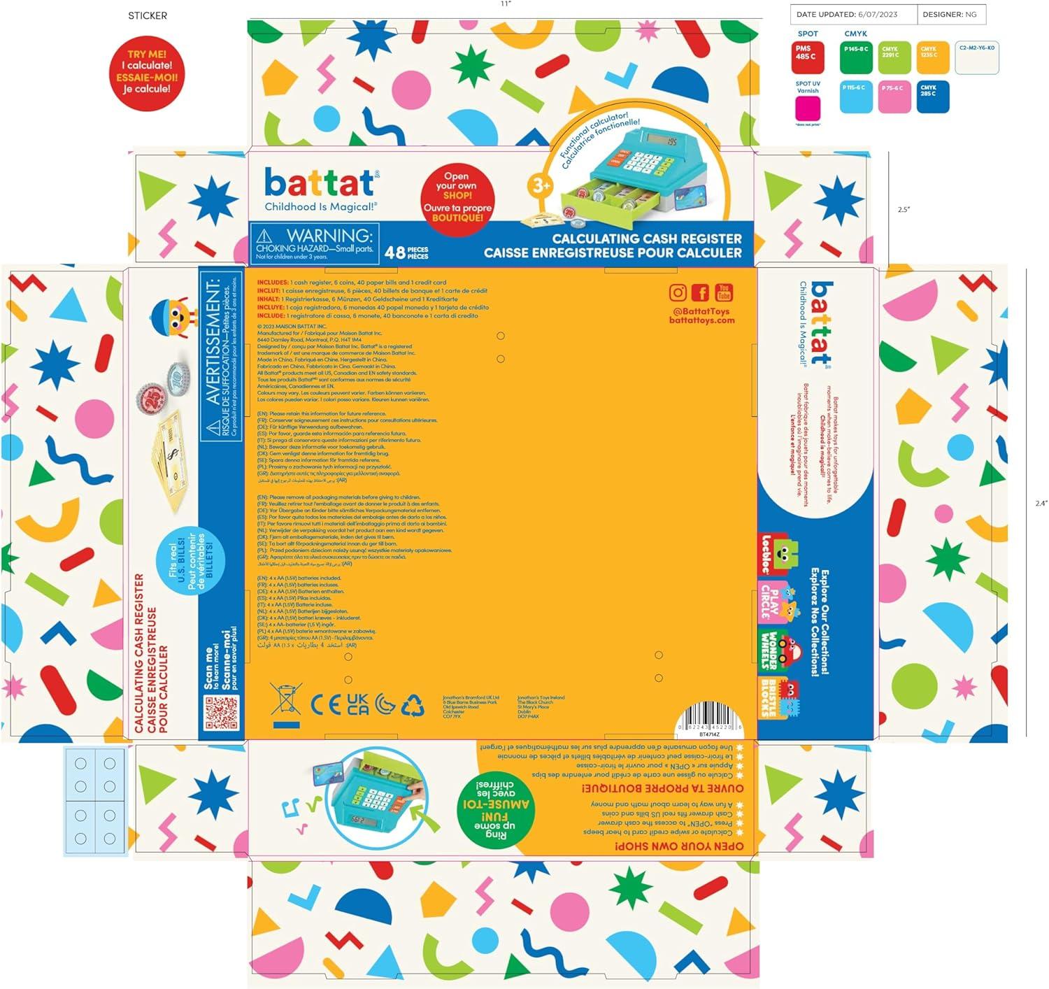 Ring up all your toys and have a blast with the Calculating Cash Register by Battat! With a working calculator and lots of pretend money to count, your little one can learn basic math and money handling skills as they play. They can practice counting, adding, and subtracting as they make change with the 40 toy bills and 6 toy coins! There’s a pretend credit card too – they’ll hear the toy register beep when they swipe it! This play register’s realistic features can spark your kiddo’s imagination, encouraging hours of imaginative pretend play. So press, swipe and play some more – there’s a whole lot of educational fun in store! Made of worry-free and durable materials, all Battat products meet or exceed EU, U. S. and Canadian safety standards.